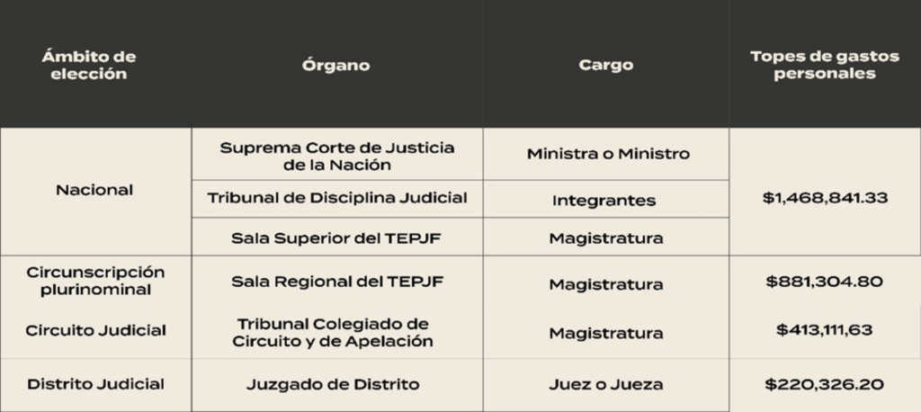 Los topes de gasto aprobados por el Instituto Nacional Electora (INE), son los siguientes: